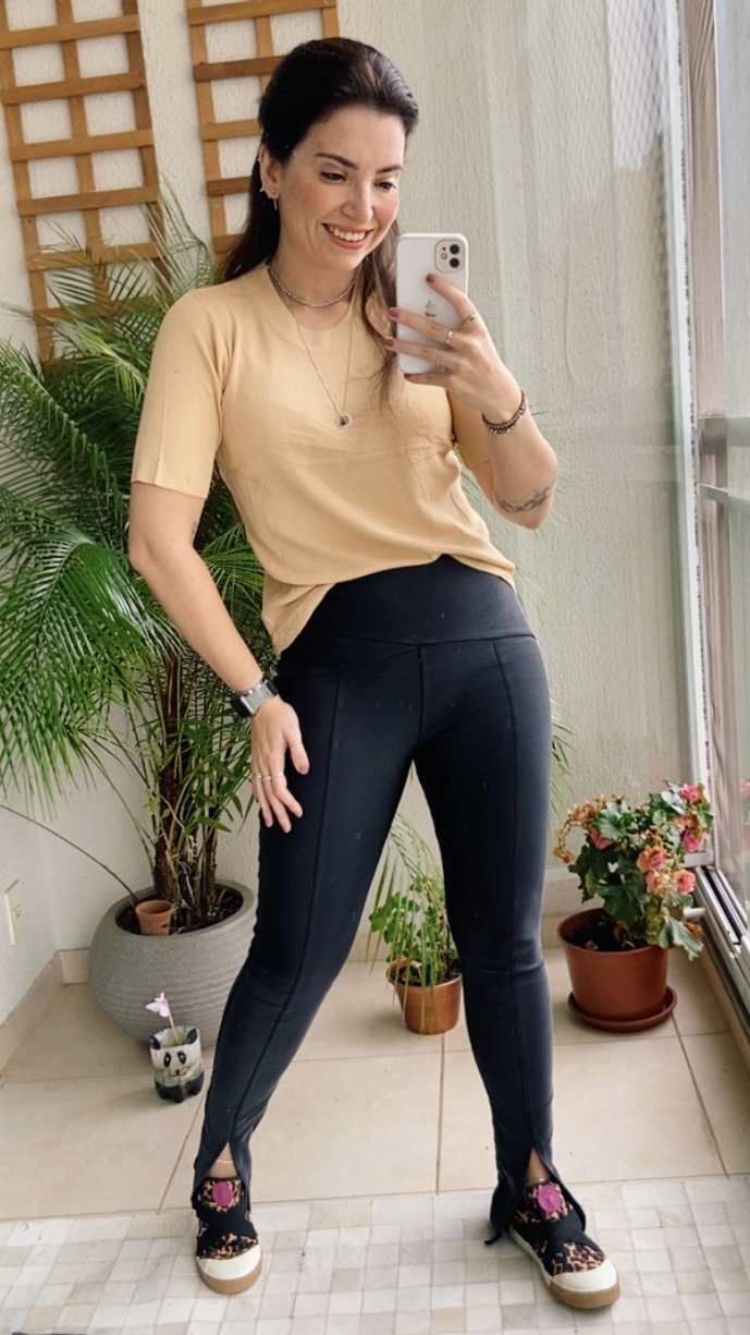 Calça Prada de tecido bem estruturado e GROSSO, modela no corpo e gera compressão na área da barriga por ter cós duplo reforçado.