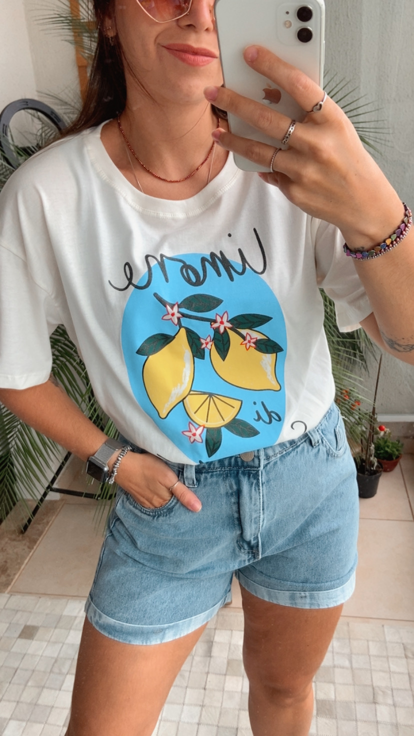 Camiseta em algodão penteado com estampa Moderna de limões.